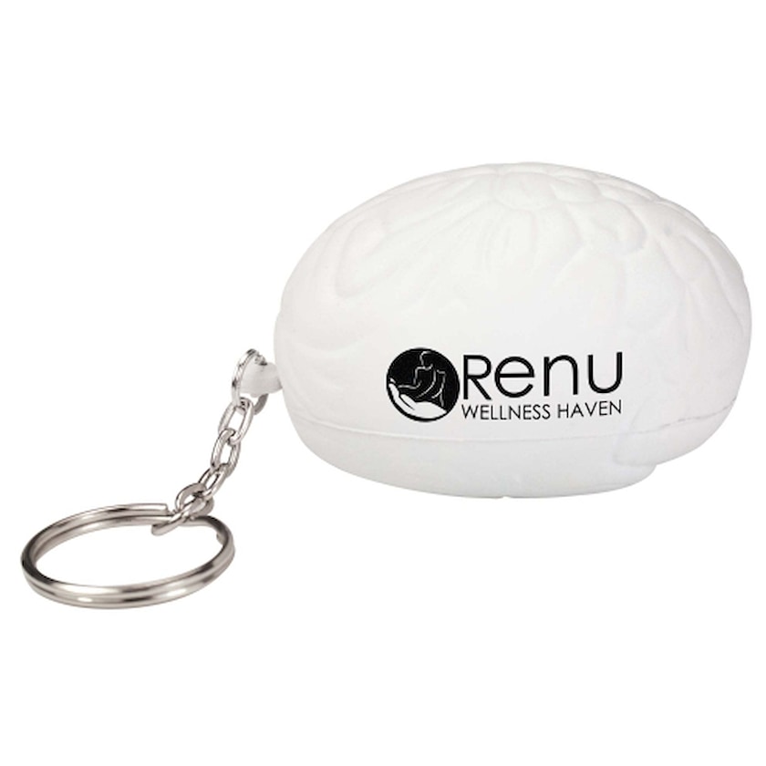 Stressball in Form eines Gehirns. Der Stressball ist mit einem Schlüsselring ausgestattet, sodass er an Ihrem Schlüsselbund befestigt werden kann. Die Druckqualität ist erstklassig.