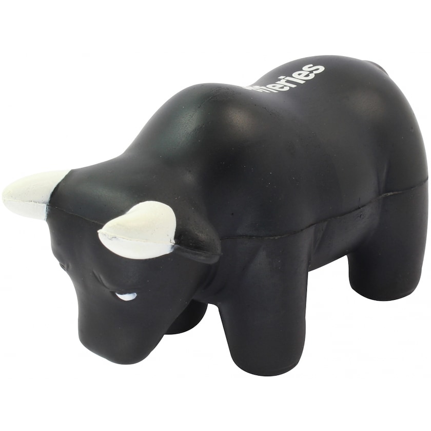 Stressball in Form eines schwarzen Stiers. Ein wirklich einzigartiger Stressball mit Druck, der Kraft ausstrahlt. Der Druck behält eine Top-Qualität und hält auch langem Gebrauch stand.