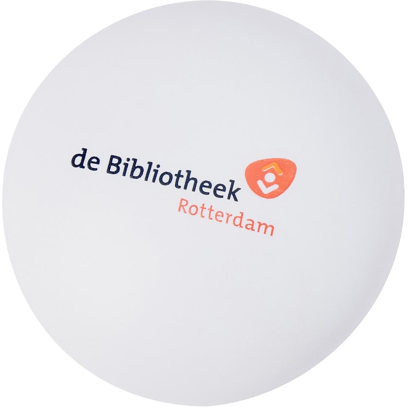 Runder und flacher Anti-Stressball mit Logo. Der Druck von Axon Profil auf Anti-Stressbällen ist besonders hochwertig und besonders beständig.