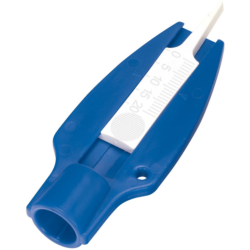 Kombinierter Profilmesser mit Ventilkappendreher am Schlüsselanhänger.