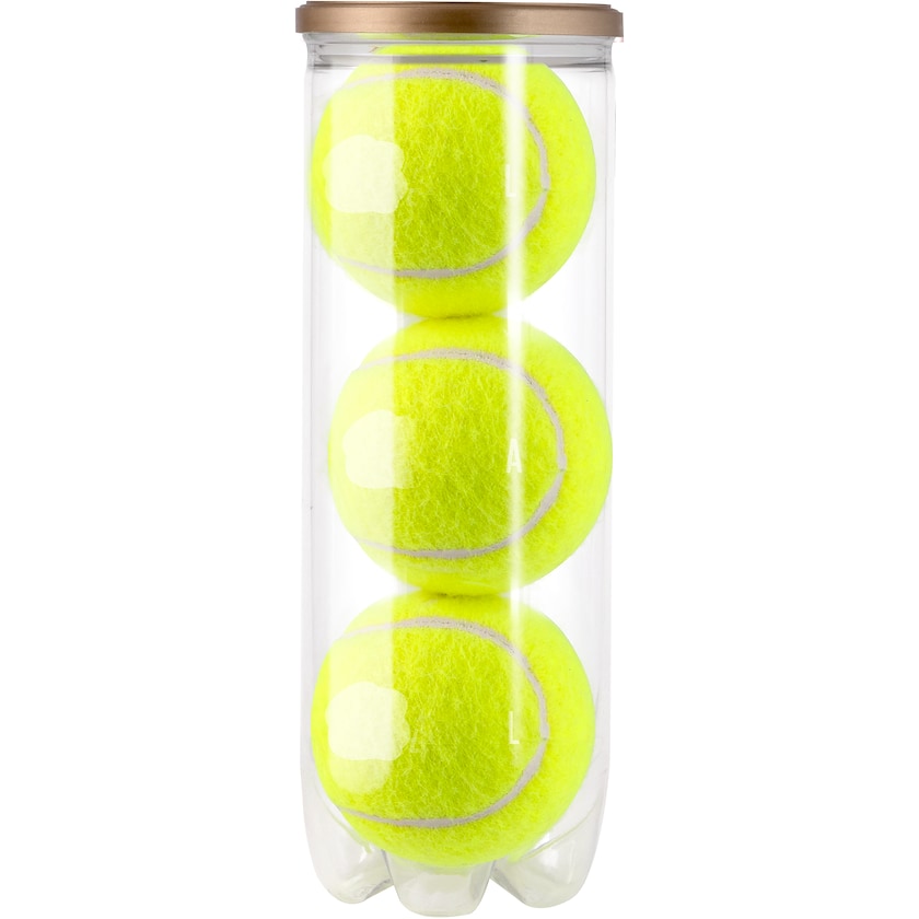 Set mit drei Tennisbällen bedruckten. Die Tennisbälle werden in Europa produziert und in einer transparenten Tube geliefert.