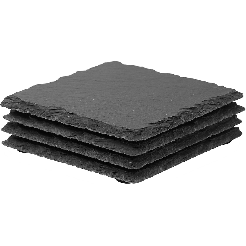 Exklusive Glasuntersetzer aus Schiefer. Das Set enthält vier Untersetzer. Der Markierpreis bezieht sich auf den Druck oder die Lasergravur auf einem der Untersetzer. Der Druck kann maximal einfarbig erfolgen.