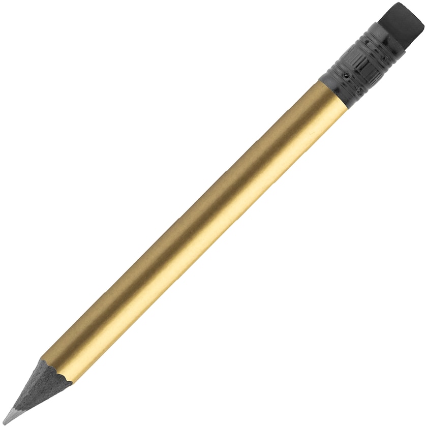 Kleiner Bleistift mit schwarzem Holz und schwarzem Radiergummi. Der Bleistift hat einen Härtegrad von HB. Wird geschärft geliefert.