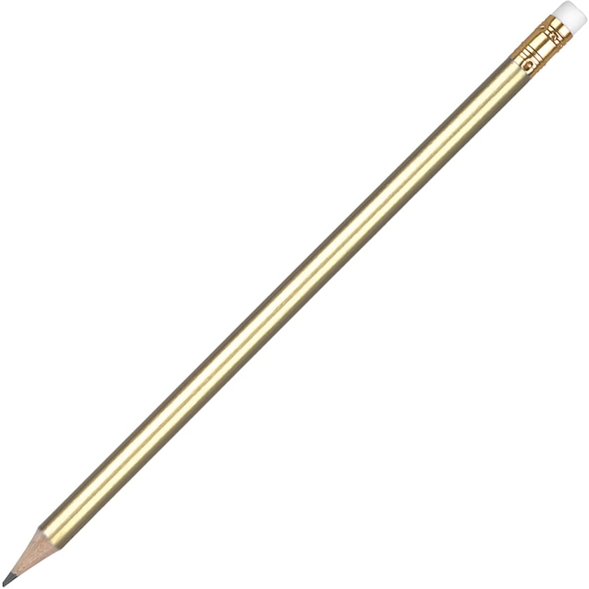 Bleistift mit weißem Radiergummi und goldfarbenem Metall. Wenn der Druck mit mehr als einer Farbe erfolgt, wird der Bleistift unangespitzt geliefert. In vielen verschiedenen Farben erhältlich. Welche Farbe gefällt Ihnen am besten?
