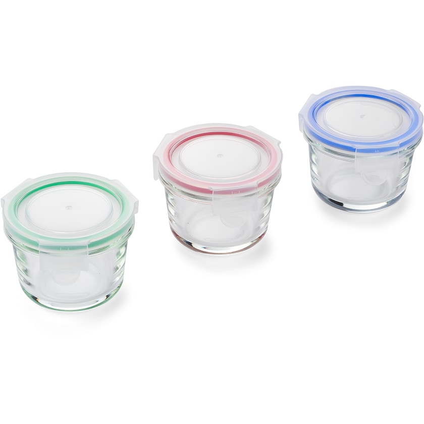 Satz mit drei kleinen Einmachgläsern. Die Einmachgläser bestehen aus Borosilikatglas und halten große Temperaturunterschiede aus. Der Druckpreis umfasst die Bedruckung eines der Gläser. Die Einmachgläser eignen sich problemlos für die Spülmaschine, die Mikrowelle, den Ofen und den Gefrierschrank.