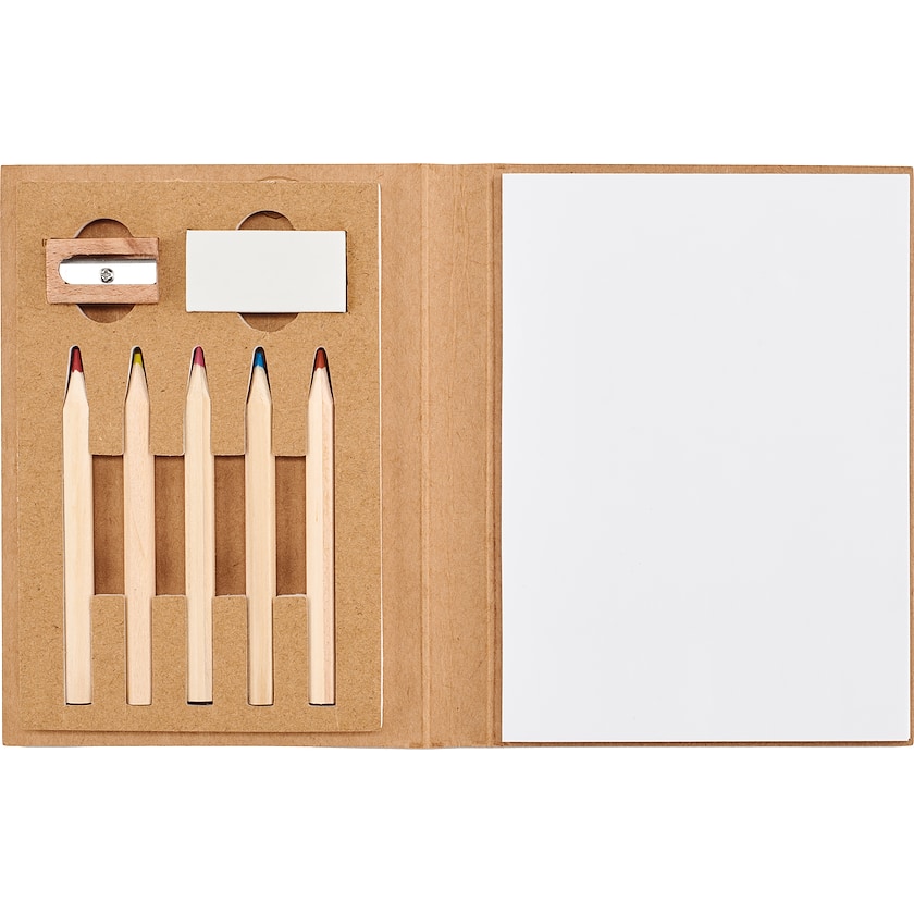 Schönes Zeichenset für Kinder. Enthält alles für viele Stunden Zeichnenspaß. Der Zeichenblock enthält 60 Blätter.