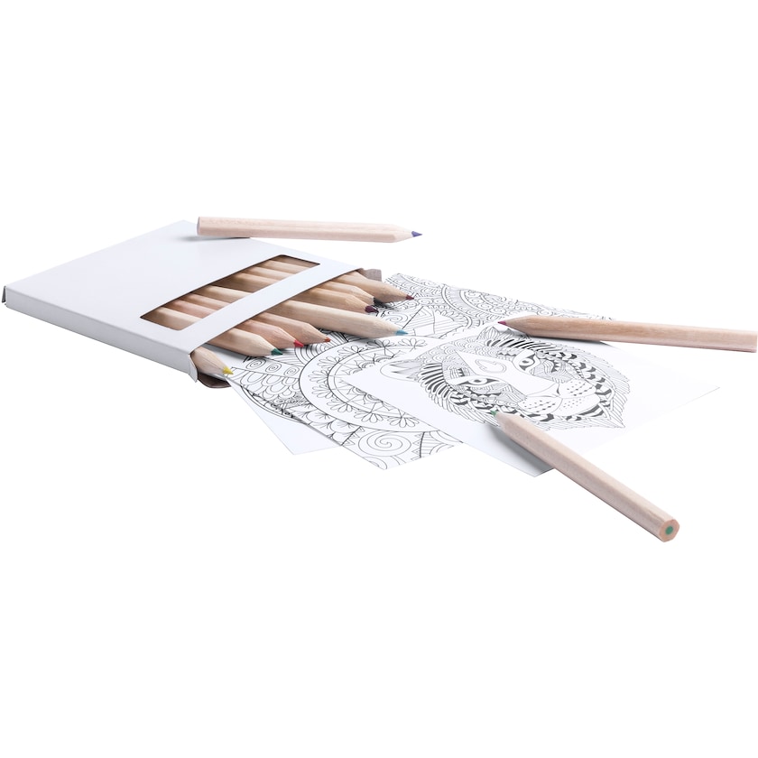 Set mit 12 Buntstiften und 12 Mandalas zum Ausmalen. Ein Set, dass Entspannung für Jung und Alt bringt. Farbenfreude und Ruhe! Der Druck auf der Verpackung kann in maximal zwei Farben erfolgen.