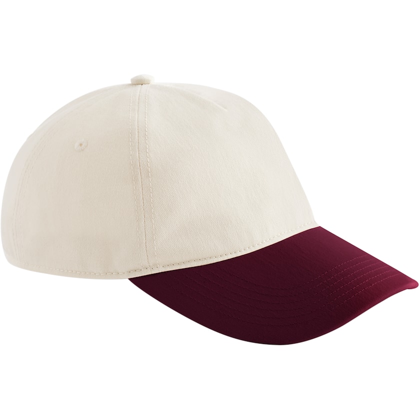 Naturfarbene Mütze mit farbigem Schirm. Das Modell Hype ist unstrukturiert und besteht aus 100% gebürsteter Baumwolle.