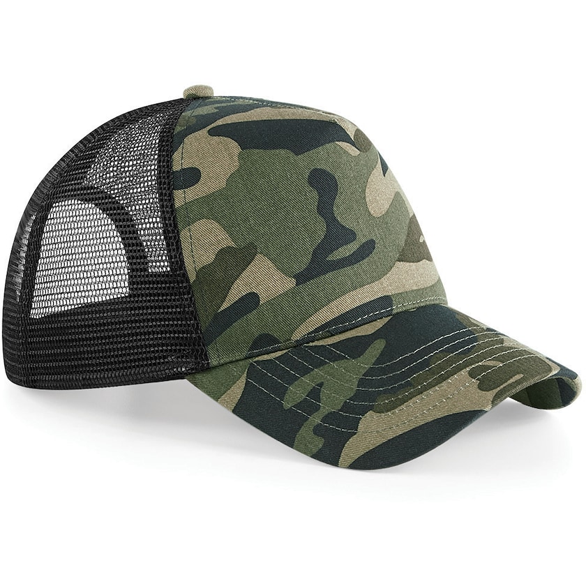 Sehr cooles Camouflage Cap in Trucker-Ausführung. Sie können zwischen 2 Camouflage Mustern wählen. Das Frontpanel ist aus Baumwolle, der hintere Bereich aus Polyester.