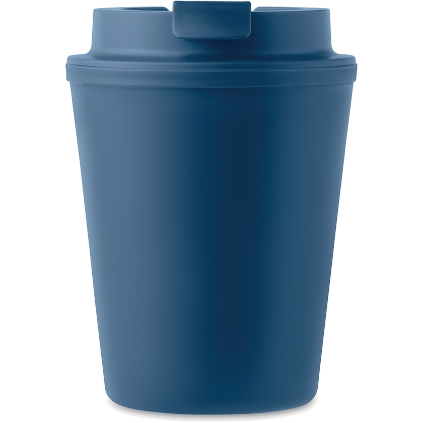 Umweltfreundlicher Take-Away-Becher mit doppelten Wänden. Dank der doppelten Wände werden Getränke lange warm gehalten. Bei 1-Farbdruck beträgt die Druckfläche ganze 220 x 50 mm.