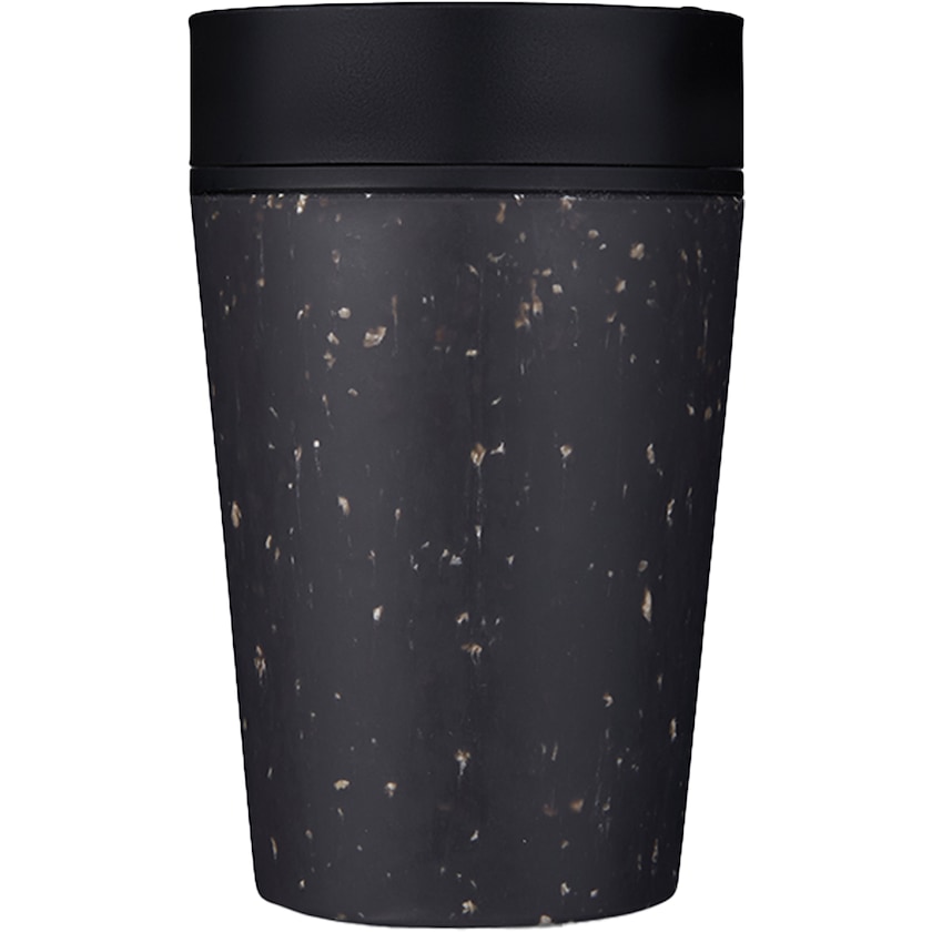 Kleiner Take-away-Becher aus recyceltem Material. Der Becher hat doppelte Wände. Die äußere Isolierschicht besteht aus recycelten Einweg-Kaffeebechern aus Papier. Die Innenwand und der Deckel bestehen aus Polypropylen. 100% auslaufsicher. Der Deckel hat ein patentiertes Design, mit dem Sie aus jeder gewünschten Richtung trinken können. Der Deckel lässt sich mit nur einer Hand öffnen und schließen. Hergestellt in Europa. Bei maximal zweifarbigem Druck beträgt die Druckfläche 80 x 25 mm.