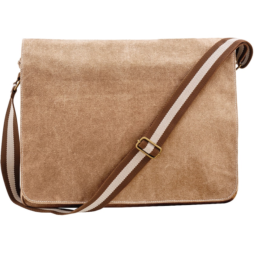 Klassische Schultertasche aus kräftigem Baumwollcanvas. Die Tragegurte sind verstellbar, die Tasche hat schicke Details aus antik behandeltem Metall. Das Hauptfach hat einen Reißverschluss, auf der Rückseite der Tasche befinden sich zwei weitere praktische Fächer. Eine Tasche im coolen Retro-Style!