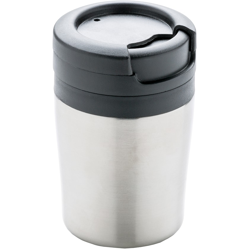 Kleiner 16 cl Metallbecher ohne Henkel. Camden ist doppelwändig und hält ihr Getränk warm. Das Äußere ist aus Metall, das Becherinnere und die Details aus zuverlässigem PP. Mit einer Höhe von 8 cm passt er in die meisten Kaffeeautomaten. Handabwasch. Geliefert wird in einer eleganten Geschenkverpackung. Registriertes Design®.