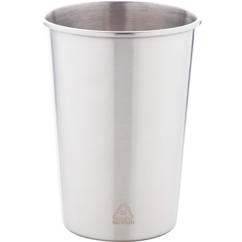Metallbecher aus recyceltem Edelstahl. Der Becher ist einwandig und fasst 35 cl.