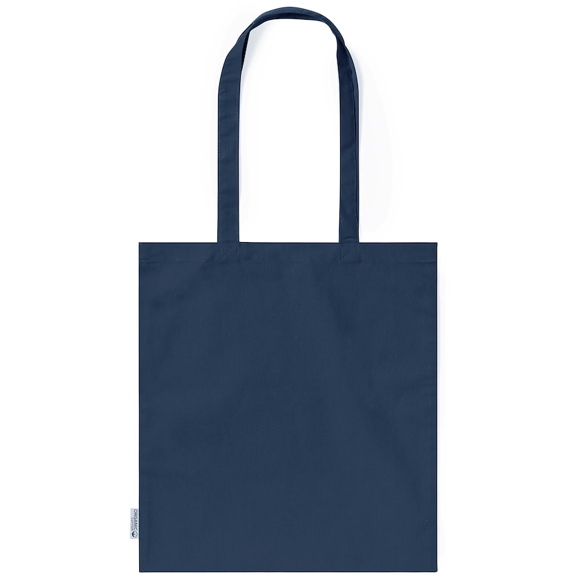 140-Gramm-Baumwolltasche aus 100 % Bio-Baumwolle. St Andrew hat lange Griffe, sodass die Tasche bequem über der Schulter getragen werden kann. Die Tasche ist sowohl mit einem Stoffetikett als auch mit einem Papieretikett ausgestattet, das zeigt, dass die Baumwolltasche aus Bio-Baumwolle besteht.