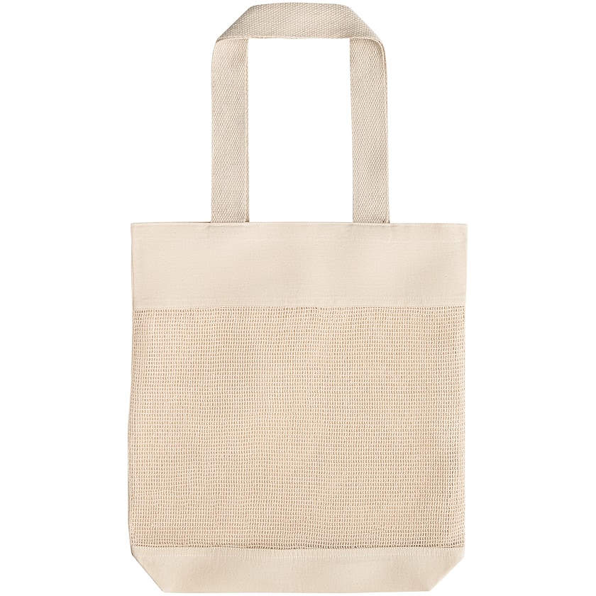 Baumwolltasche mit Logo und Netz an der Vorderseite. Brodie besteht aus 180-g/m²-Baumwolle und hat 65 cm lange Tragegriffe. Eine perfekte Baumwolltasche fürs Shopping!