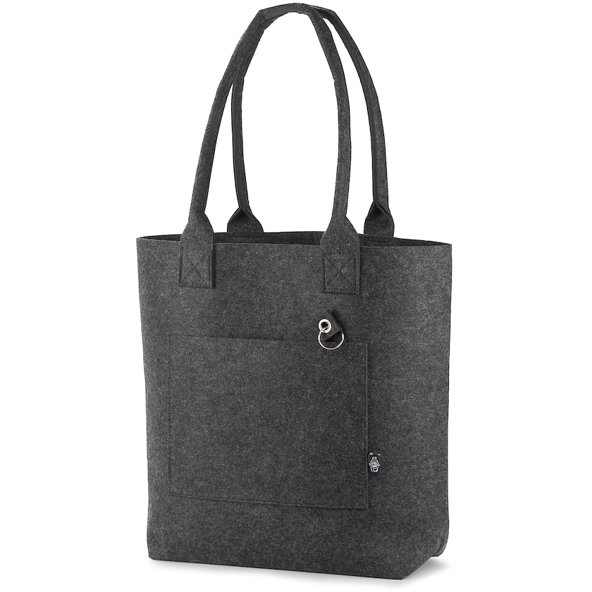 Luxuriöse Filztasche aus umweltfreundlichem Material. Banks hat lange Griffe und vorne befindet sich eine kleine Aufbewahrungstasche. Ein passender Schlüsselanhänger aus dem gleichen Filzmaterial ist im Lieferumfang enthalten.