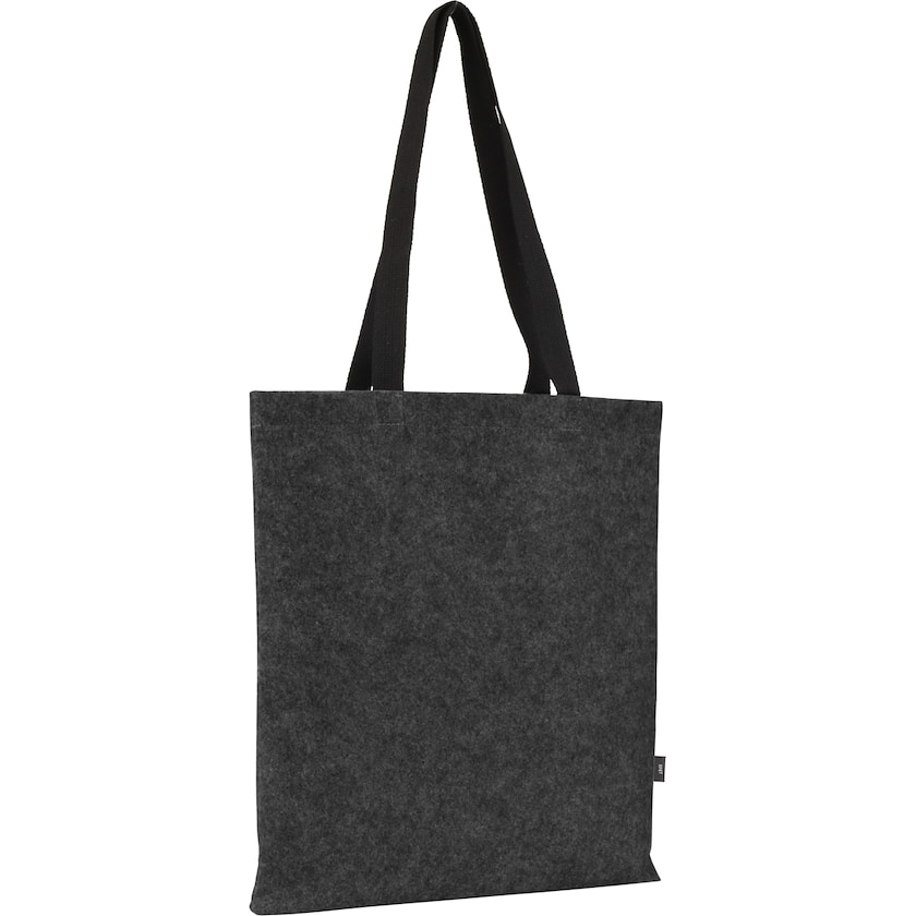 Stofftasche mit dickerem Filzstoff aus recycelten PET-Flaschen. Die Griffe sind aus Baumwolle. Es ist nur 1-farbiger Druck möglich.