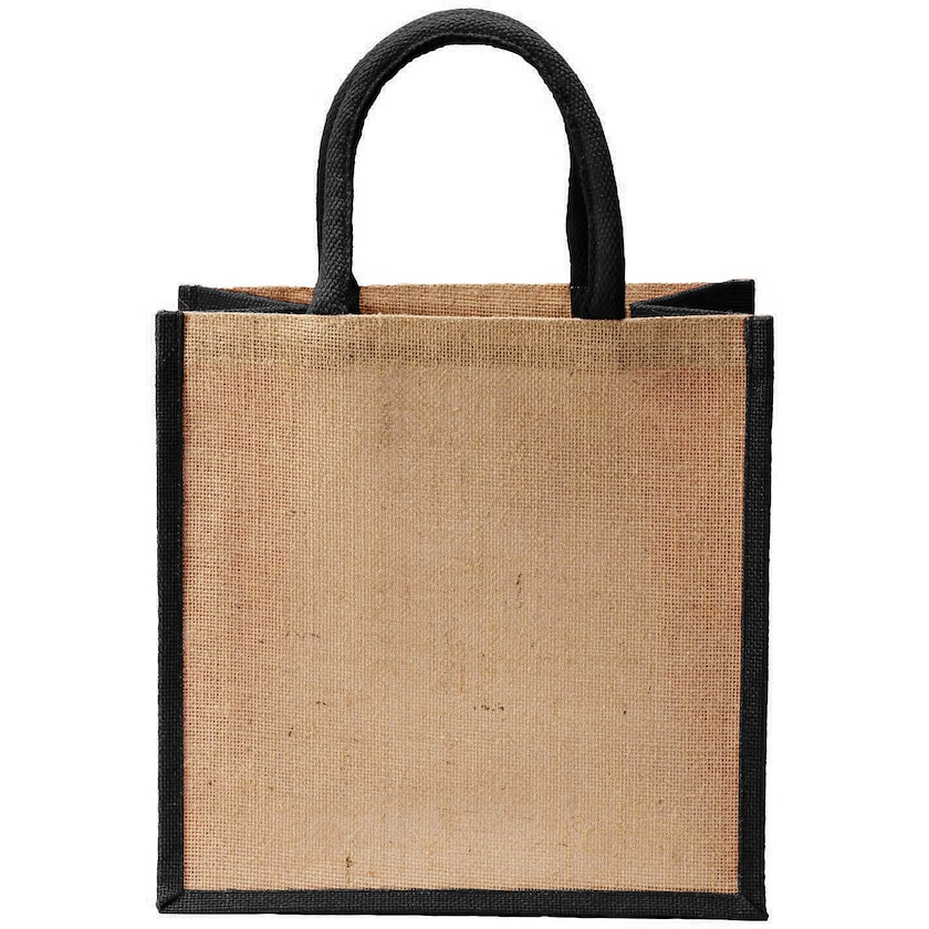 Kleine Jutetasche mit farbigen Griffen und Details. Diese kleine Jutetasche ist eine ideale Tasche für die Verteilung von Werbegeschenken (Give-aways).