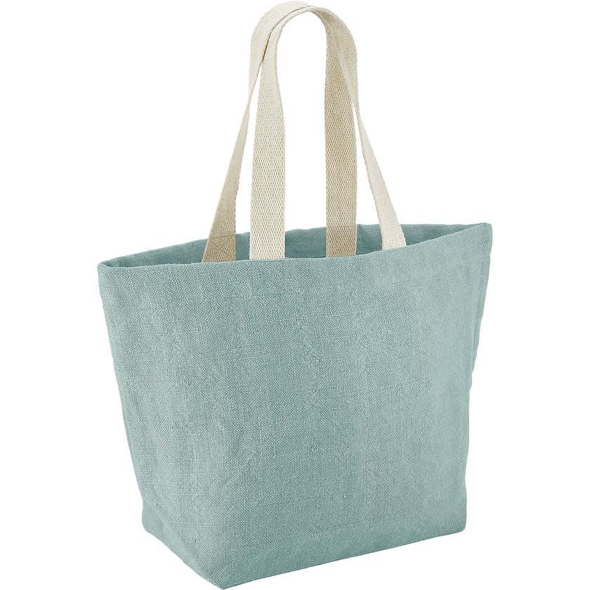 Jutebeutel mit weichem Jutestoff. Kann in der Hand oder über der Schulter getragen werden. Im Inneren befindet sich eine Aufbewahrungstasche für kleinere Gegenstände.
