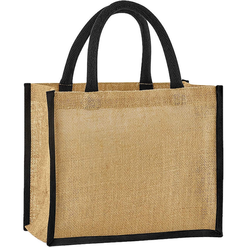 Wunderschöner Jutebeutel mit Baumwollgriff. Der Jutestoff ist unlaminiert, was der Box ein natürliches Aussehen verleiht.