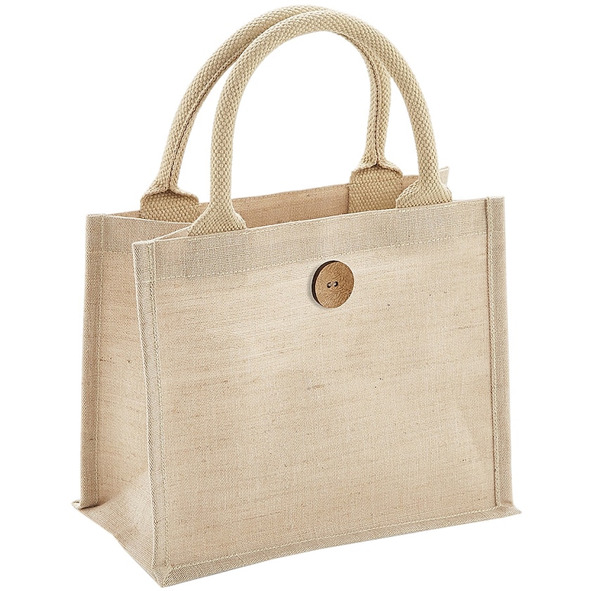 Kleine Tragetasche aus natürlichen Materalien. Montagu besteht aus einem hochwertigen laminierten Gewebe aus 72% Jute und 28% Baumwolle. Die Tragegriffe sind aus 100% Baumwolle. Eine Jutetasche aus höchster Qualität!