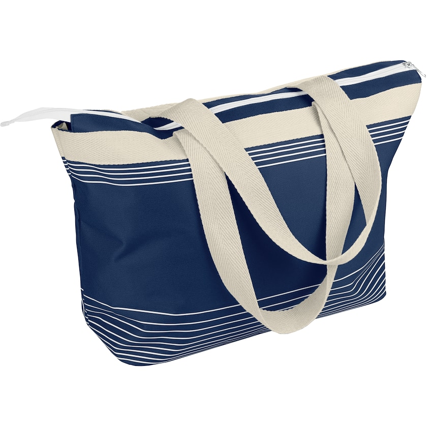 Zeitlose Strandtasche, kann auch gut als Einkaufstasche genutzt werden. Die Tasche ist aus Polyester mit Details und Griff aus schönem Baumwollcanvas. Die Tasche hat ein praktisches Innenfach, beispielsweise für Wertsachen.