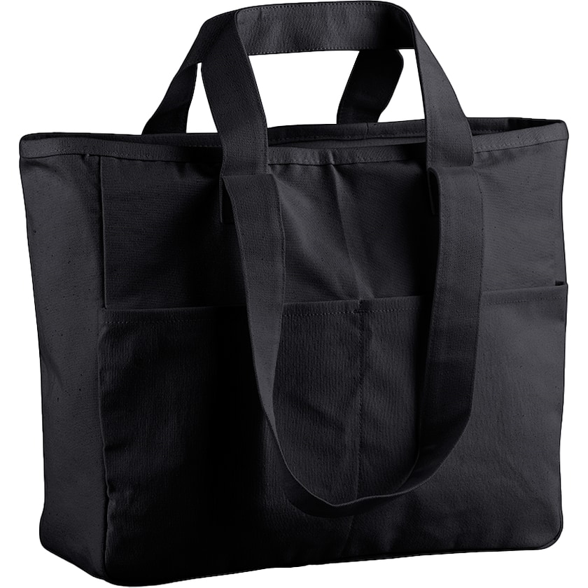 Strandtasche aus robustem Baumwoll-Canvas. Das Hauptfach ist mit einem Reißverschluss ausgestattet. Vorne sind zwei kleinere Taschen vorhanden. Der Stoff wiegt satte 475 Gramm und ist qualitativ hochwertig.