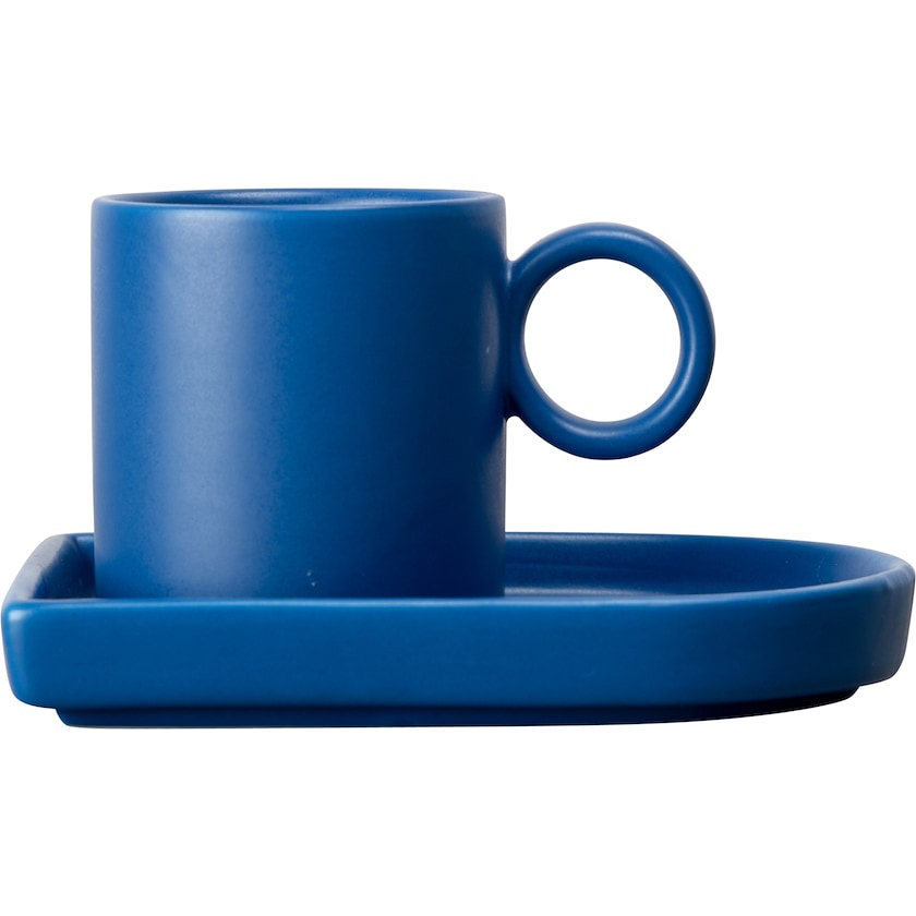 Espressotasse mit Untertasse im verspieltem Design. Das Set ist aus hochwertigem Porzellan gefertigt. Das minimalistische Design in Kombination mit dem übergroßen Henkel sorgt für eine verspielte Anmutung. Ein Liebling im Büro!