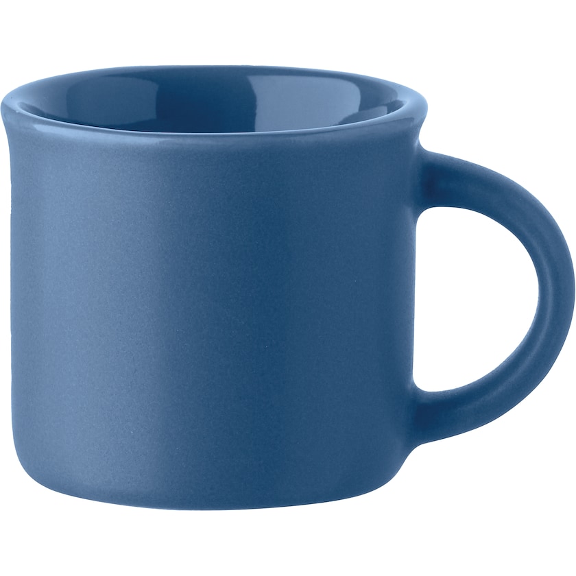 Espressotasse mit Henkel. Die Tasse ist aus robustem Steingut gefertigt und verfügt über ein Fassungsvermögen von 4 cl. Sie wird einzeln verpackt in einem weißen Karton geliefert.