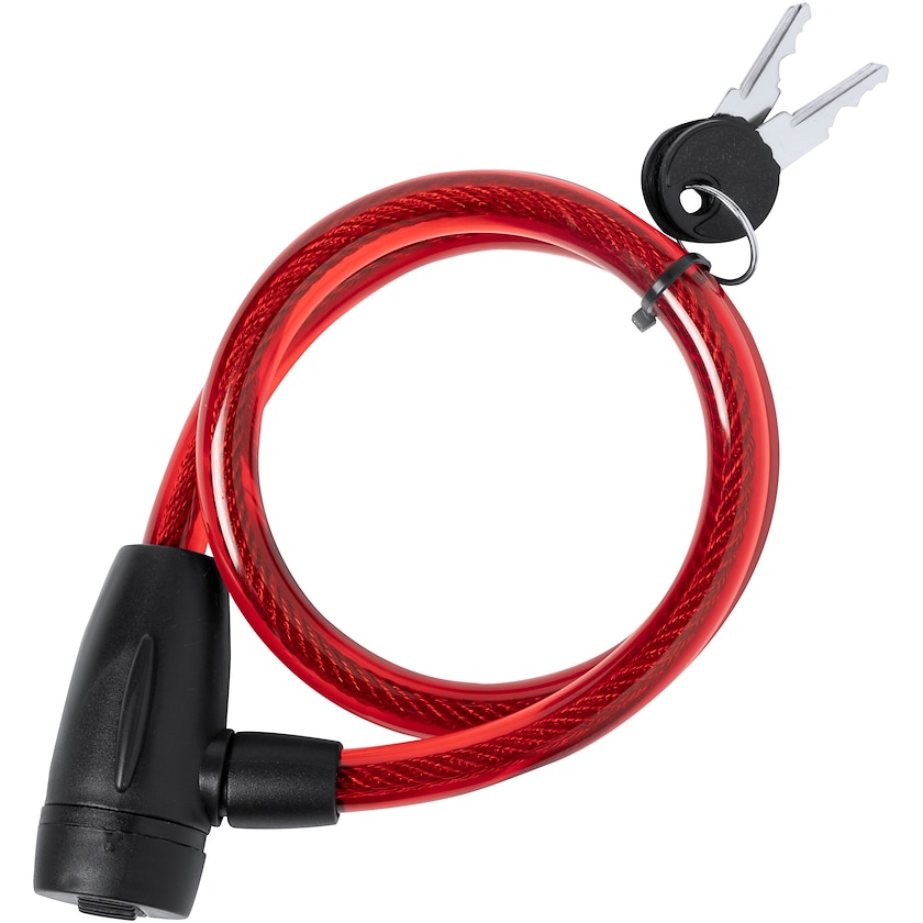 Fahrradschloss mit Stahlseil. Im Lieferumfang sind zwei Schlüssel enthalten. Der Druck kann in maximal zwei Farben erfolgen.