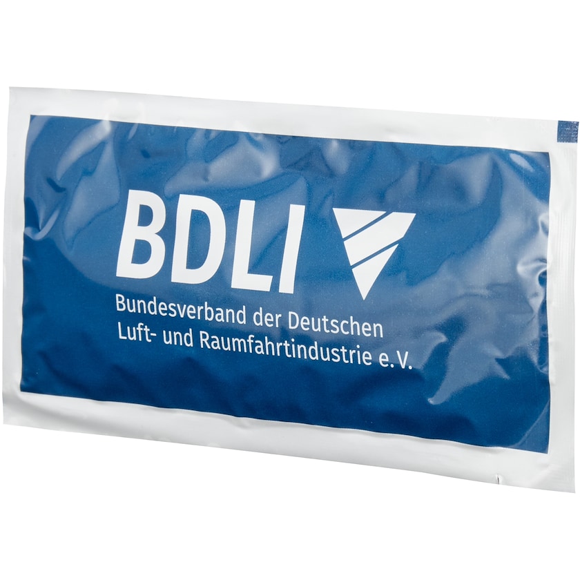 Rechteckige Feuchttücher mit großer Werbefläche. Sie gestalten die Verpackung! Die Feuchttücher haben die Maße 160 x 180 mm. Die Feuchttücher enthalten keinen Alkohol und sind daher besonders hautfreundlich.