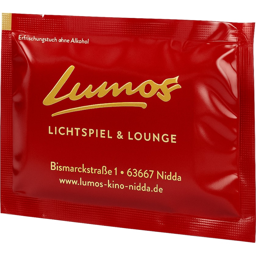 Feuchttücher, die ab mindestens 1000 Stück gekauft werden können. Die ganze Verpackung wird mit 4-Farb-Fotodruck bedruckt. Die Feuchttücher messen 130 x 180 mm und sind alkoholfrei, weshalb sie besonders sanft zur Haut sind.