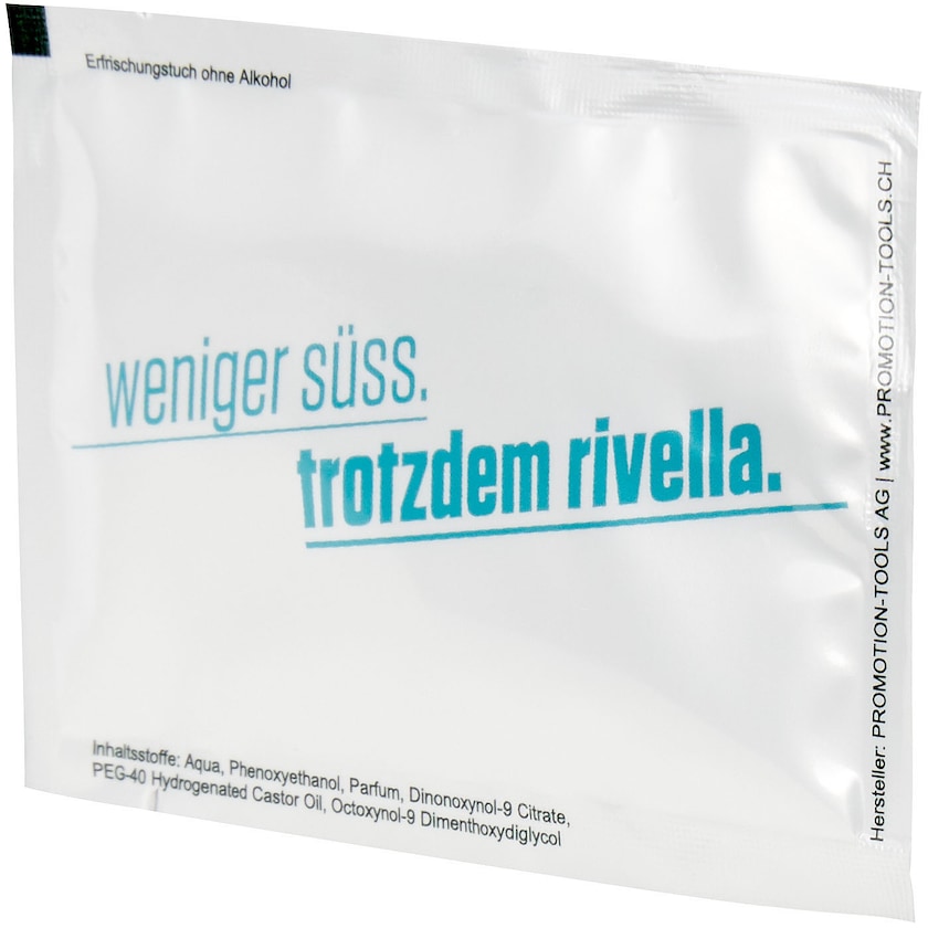 Etwas größere Feuchttücher sind ab 1000 Stück erhältlich. Die ganze Verpackung wird mit 4-Farb-Fotodruck bedruckt. Die Feuchttücher messen 150 x 180 mm und sind alkoholfrei, weshalb sie besonders sanft zur Haut sind.