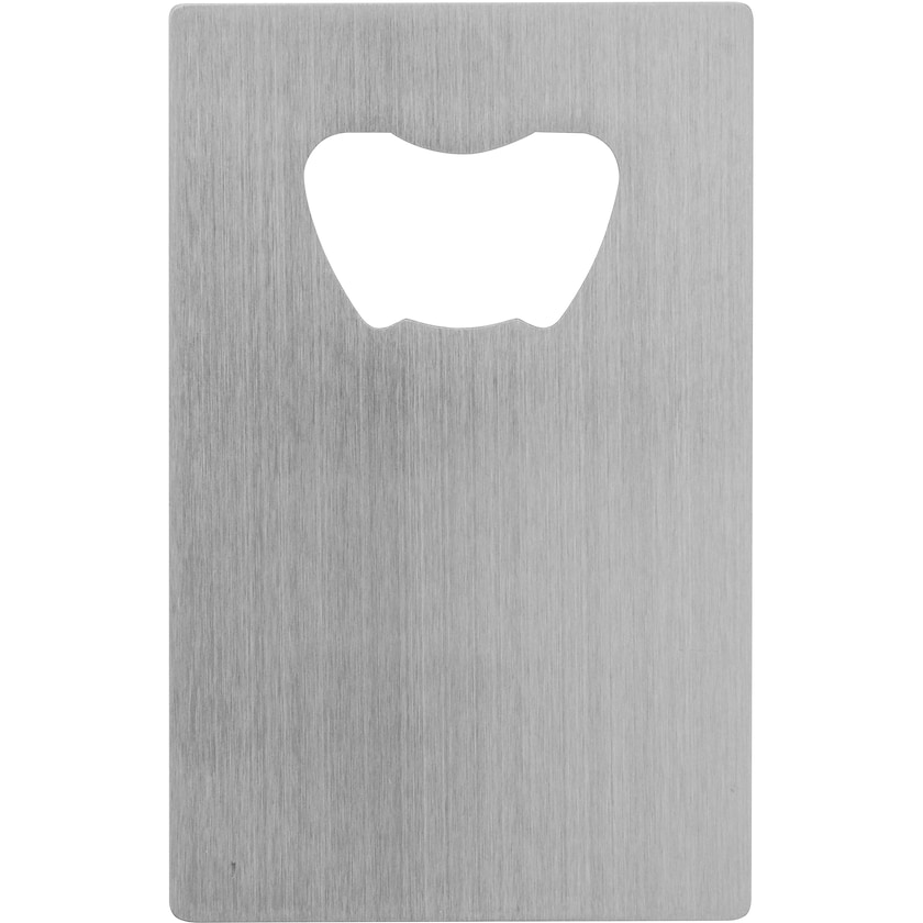 Flaschenöffner in Kreditkartenformat aus rostfreiem Stahl. Dank seiner Form bietet er ausreichend Platz für Ihr Logo. Das Logo wird aufgelasert.