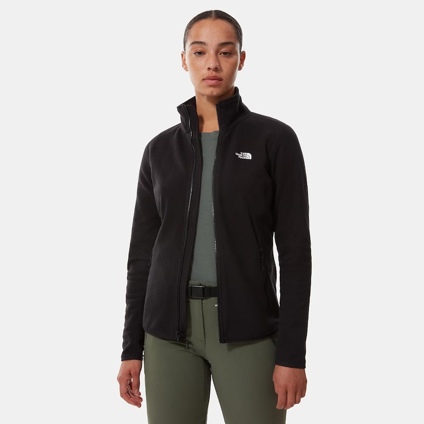 Damen-Fleecejacke von The North Face. Der Pullover hat einen Reißverschluss und besteht zu 100 % aus recyceltem Polyester. Vorne befinden sich zwei Reißverschlusstaschen. Der Pullover hat eine einzigartige Konstruktion, die Sie warm hält, ohne zu schwitzen. Gibt es auch als Herrenmodell.