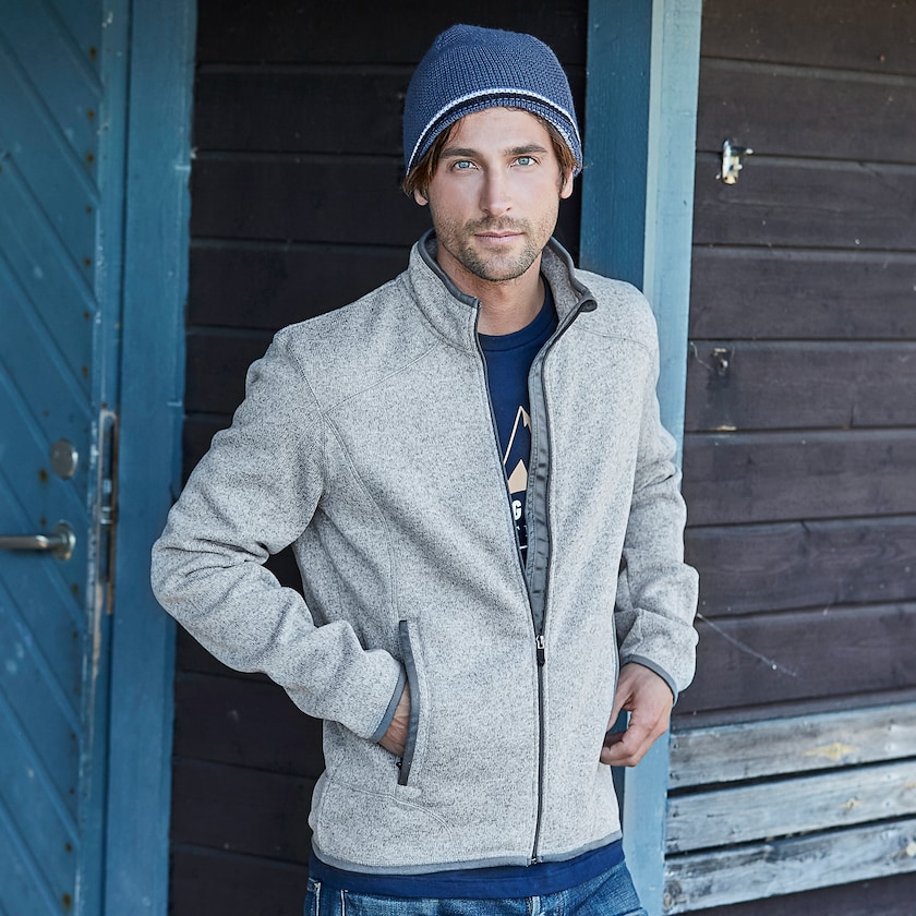 Eine rustikale, gestrickte Fleecejacke mit maßgeschneiderter Passform. Tee Jays Aspen passt als Außenjacke oder unter einer anderen Jacke. Der Stoff ist melange-gestrickt, wodurch Aspen einen coolen und authentischen Look erhält. Wird in Plastikhülle verpackt geliefert. Gibt es auch als Damenmodell.