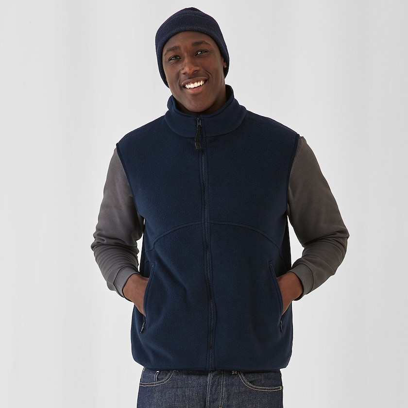Fleeceweste für den Einsatz im Freien. An den Seiten befinden sich Reißverschlusstaschen. Eine sportliche und warme Fleecejacke.