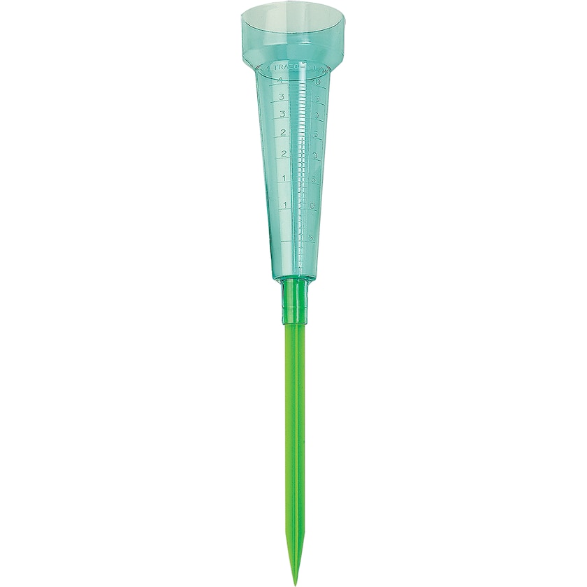 Regenmesser, der die gefallene Regenmenge im Auge behält. 1 Strich bedeutet 1 Liter pro m². Der Druck kann maximal zweifarbig erfolgen.