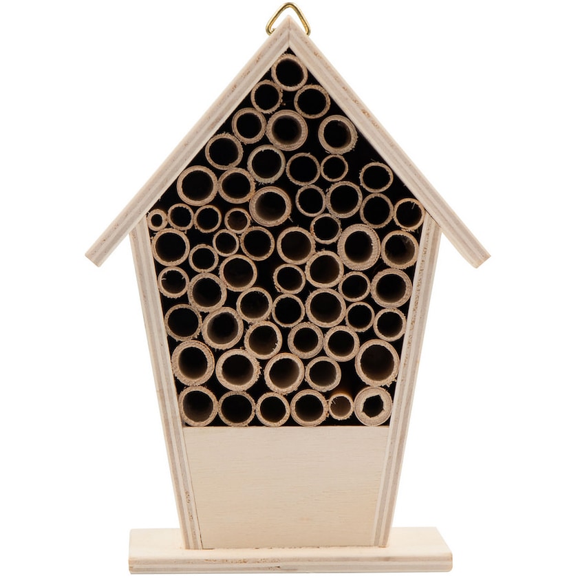 Insektenhaus für einen grünen Garten. Das bedruckbare Insektenhaus ist aus hochwertigem Sperrholz gefertigt und mit Schilf gefüllt. Die Beschriftung erfolgt per Lasergravur.