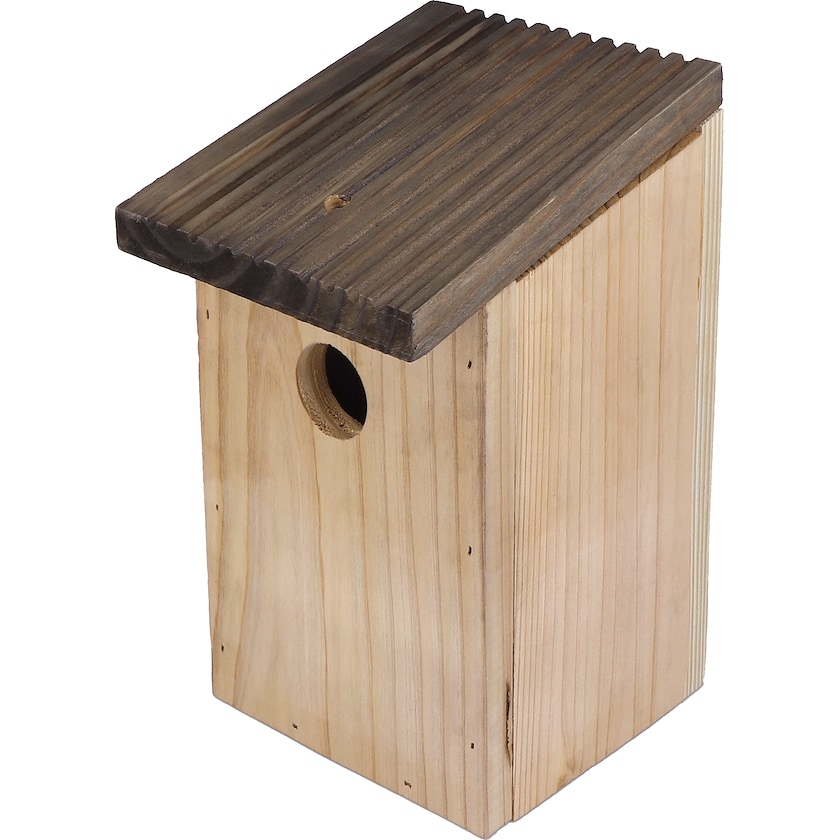 Rustikales Vogelhäuschen aus Holz. Die Öffnung ist 30 mm groß , was perfekt für kleinere Vögel ist. Das Holz ist FSC-zertifiziert. Die Markierung erfolgt mittels Lasergravur.