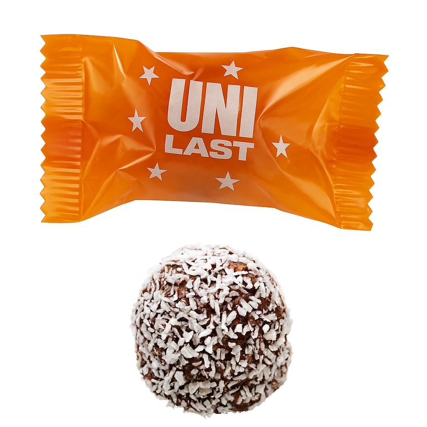 Große Schokokugel in einer Verpackung mit eigenem Logo bedrucken. Die Schokokugeln haben einen leckeren Mokkageschmack und eine leckere Hülle aus Kakao und Kokos. Die gesamte Verpackung wird nach ihrem Wünschen bedruckt. Eine perfekte Zwischenmahlzeit.