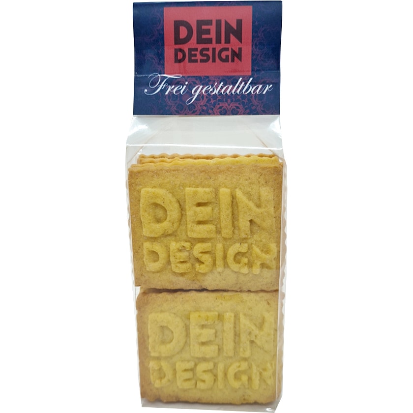 8 handgemachte Kekse mit Ihrem Logo obendrauf. Die Kekse werden ohne Konservierungsstoffe, Farbstoffe oder sonstige Zusätze in Deutschland gebacken. Wählen Sie zwischen vier herrlichen Geschmacksrichtungen und drei verschiedenen Keksformen. Ihr Logo erscheint mit einem einzigartigen 3D-Effekt. Verpackt werden die Kekse in einem klimaneutralen Klarsichtbeutel mit Papiereinlage und Deinem Aufdruck.