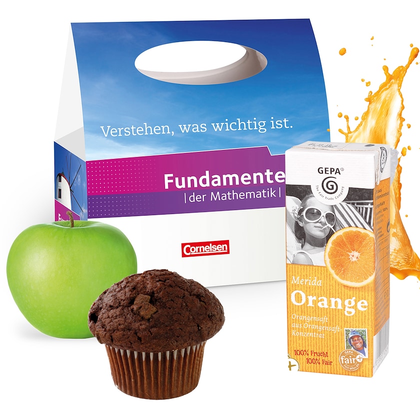 Pappschachtem mit 4-Farb-Fotodruck mit Muffin, Apfel und Orangensaft. Wählen Sie zwischen den Geschacksrichtungen Schokolade und Schokostückchen. Der Äpfel sind rot oder grün, abhängig von Saison und Verfügbarkeit. 20 cl Saftpäckchen. Eine leckere Zwischenmahlzeit!