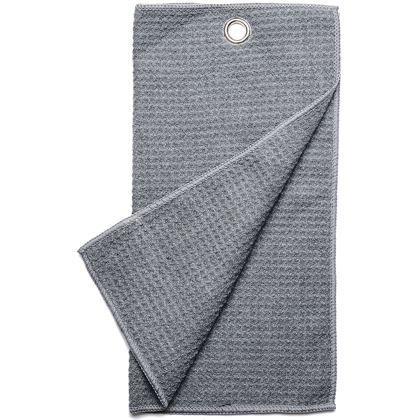 Dreiteiliges Golfhandtuch aus Mikrofaser. Golfhandtuch mit verchromten Karabiner (nicht auf dem Bild).