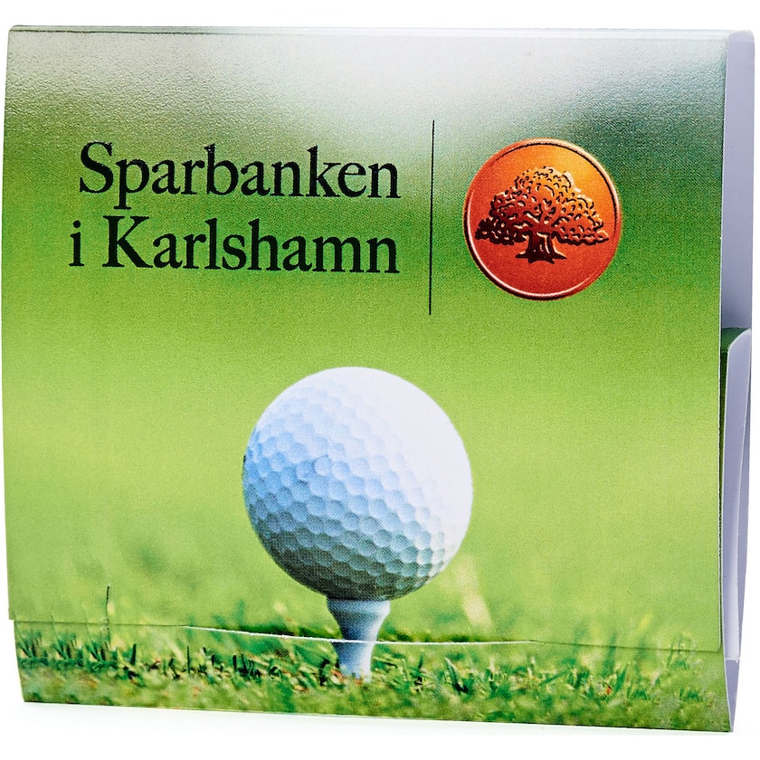 Große Papphülle mit sechs Tees und einem Ballmarker. Wählen Sie eine Farbe für die Tees und eine Länge von 55 oder 70 mm. Der Preis enthält 4-Farb-Fotodruck auf der Papphülle und dem Ballmarker und einfarbiger Druck auf den Tees. Der Ballmarker hat eine Druckfläche von Ø 25 mm und die Tees 25 x 4 mm (55 mm Tee) und 34 x 4 mm (70 mm Tee). Die Tees können auf auf dem Kopf bedruckt werden und haben dort eine Ø 9 mm Druckfläche.
