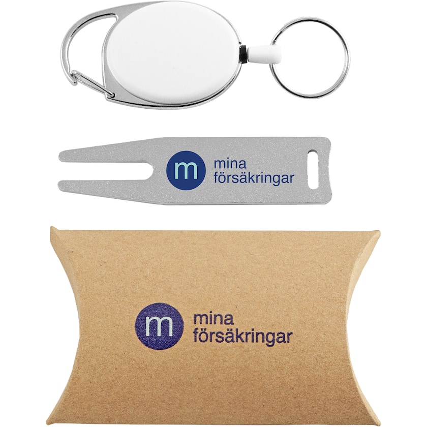 Golfset mit Greenslayer und Jo-Jo-Aufhänger. Der Druckpreis bezieht sich auf die Bedruckung der Greenslayer, des Jo-Jo-Aufhängers und der Kartonverpackung.