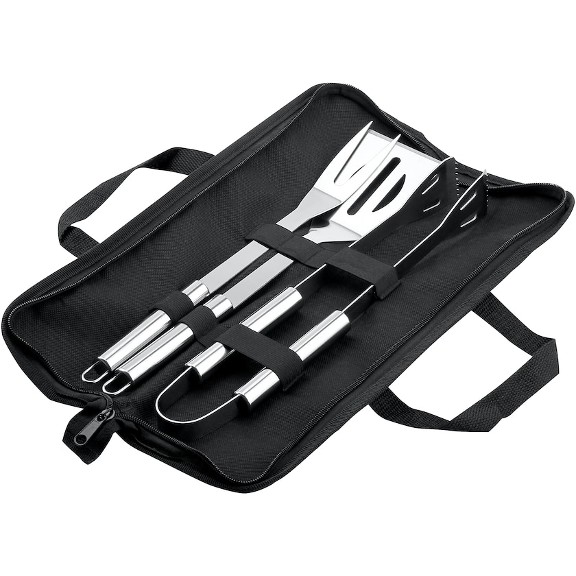 Preiswertes, 3-teiliges Grillset. In praktischer Aufbewahrungshülle. Enthält Grillgabel, Pfannenwender und Zange. Markierung erfolgt mit Druck auf der Hülle.