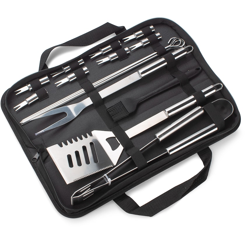Hochwertiges Grillset, enthällt alles für Ihr nächstes Grillvergnügen. Das Set wird in einer praktischen Aufbewahrungstasche geliefert. Gedruckt wird auf diese Aufbewahrungstasche. Das perfekte Geschenk für diesen Sommer!