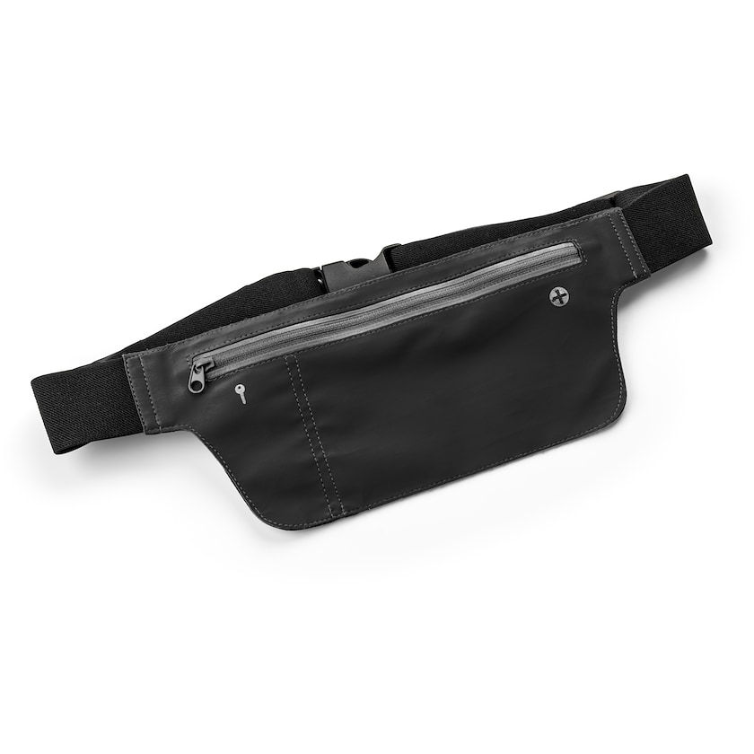 Sportliche Hüfttasche bedrucken. Der Kunde verfügt über eine Aufbewahrungstasche mit Reißverschluss und eine Buchse für Kopfhörer.